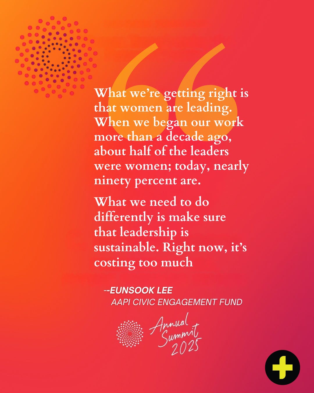 “And we can’t rebuild democracy with the same tools that broke it,” said EunSook. “Care is infrastructure. Protection is infrastructure. Rest is infrastructure. Until we build that, we’re setting women up to fail.”