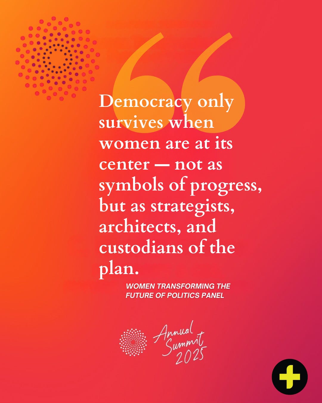 Together, we made the case for what should by now be obvious: democracy only survives when women are at its center — not as symbols of progress, but as strategists, architects, and custodians of the plan.